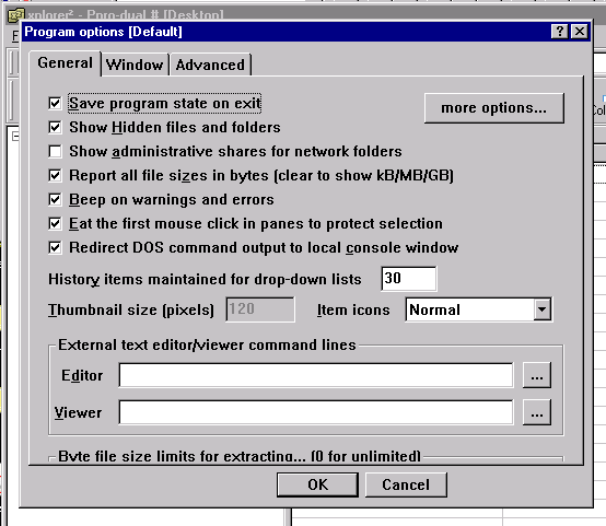 Temp. Images Temp images of tools-options menus problems in WinNT4.0 using Xplorer2.